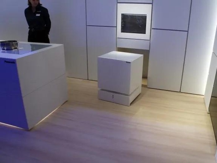 Panasonic membuat smart home appliance yaitu kulkas yang bisa dipanggil dan bisa bertugas membawa piring kotor ke wastafel dapur. Foto: (Japan Today)