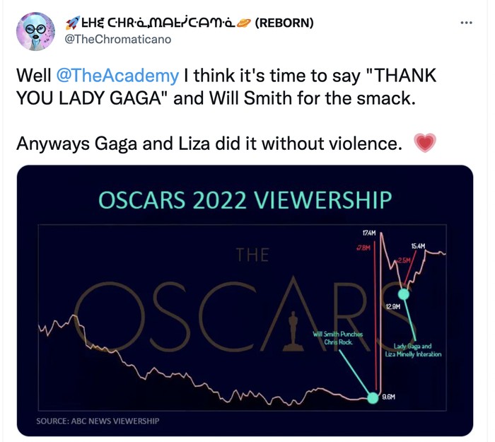 Netizen menyoroti rating Oscar yang melonjak setelah insiden itu. Foto: Twitter
