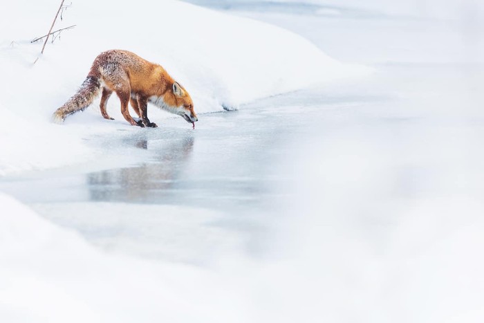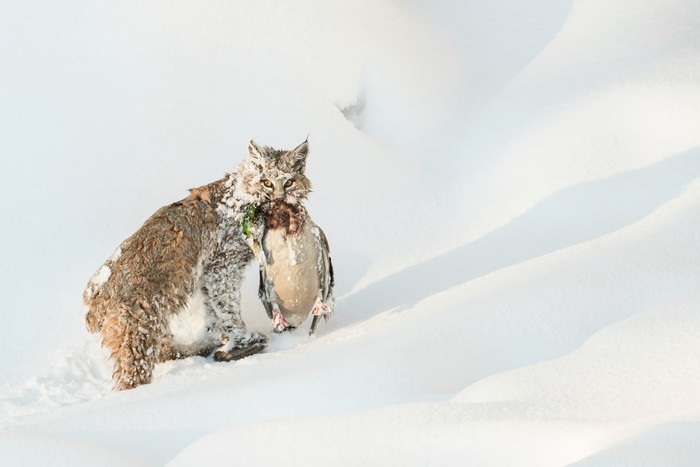 WET Gold Award diraih Vicki Santello dari AS. Menampilkan gambar Bobcat yang berhasil berburu di sungai Madison. Foto: WildArt Photographer of the Year