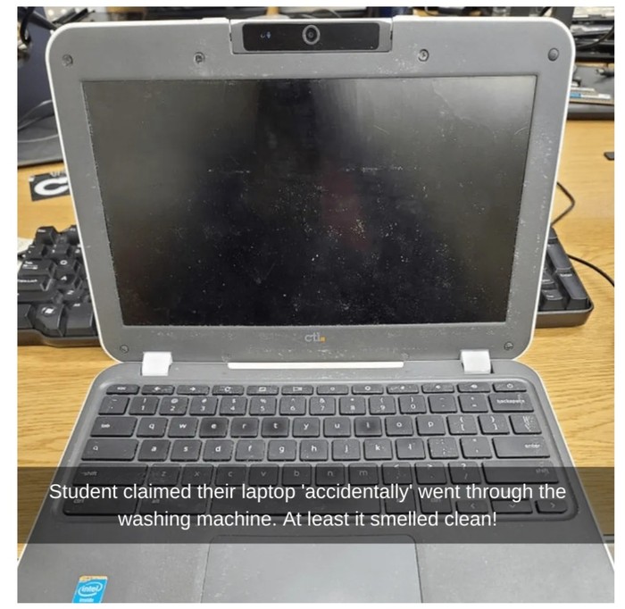Meskipun penting untuk menjaga komputer kamu tetap bersih untuk mencegah kotoran masuk ke sistem dan merusak fungsi internal perangkat namun orang ini harus membawa laptopnya untuk diperbaiki setelah secara tidak sengaja memasukkannya ke dalam mesin cuci. Foto: Drivepedia