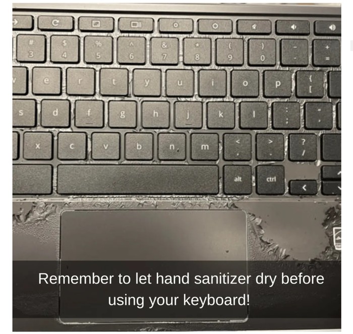 Selama pandemi COVID-19, kita selalu diingatkan betapa pentingnya cuci tangan dan menjaga kebersihan diri. Menggunakan pembersih tangan adalah cara terbaik untuk menjaga kulit bersih dan menghindari bakteri atau virus jahat. Namun, kata peringatan harus diberikan. Jika laptop kamu memiliki casing plastik, pastikan untuk menggosok pembersih tangan dan biarkan mengering sebelum menggunakan komputer! Atau alkohol dari hand sanitizer akan membuat plastik melengkung. Foto: Drivepedia