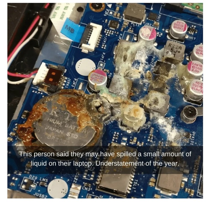 Ketika teknisi harus jago membersihkan bagian dalam laptop yang ketumpahan kuah nasi. Foto: Drivepedia