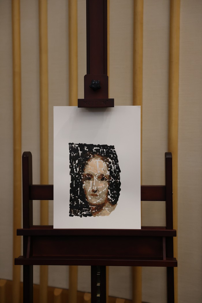 Dalam konferensi pers di di The British Library pada 4 April 2022 lalu pun Ai-Da menunjukkan kemapuannya dalam melukis.