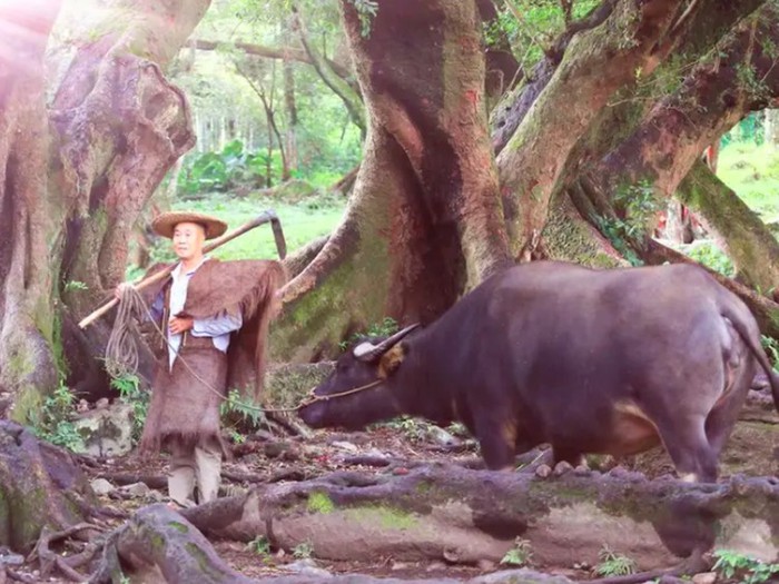 Demikian juga para petani yang terlihat sedang menggiring kerbau itu sebenarnya adalah model yang berperan sebagai petani untuk kebutuhan foto atau video di desa tersebut. Foto: Weibo