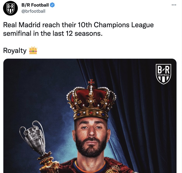 Real Madrid menembus semifinal Liga Champions untuk kesepuluh kalinya dalam 12 musim terakhir. Foto: Twitter