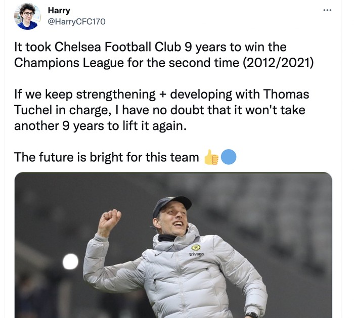 Menurut netizen ini, masa depan Chelsea tetap akan cerah di bawah Thomas Tuchel. Foto: Twitter