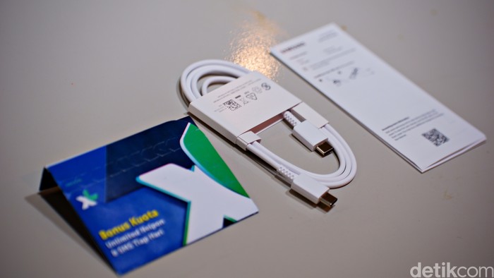 Samsung menyediakan kabel data perdana XL, buku petunjuk penggunaan. o: Adi Fida Rahman/detikINET