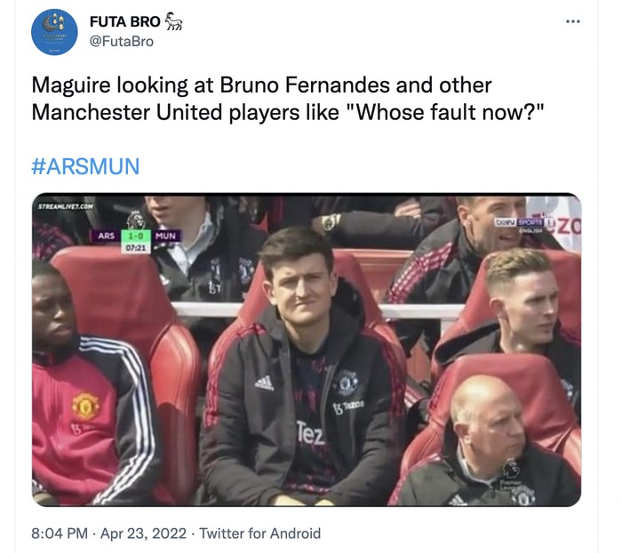 "Salah siapa sekarang?" mungkin begitu yang ada di pikiran Maguire kalah melihat MU kewalahan semalam. Foto: Twitter