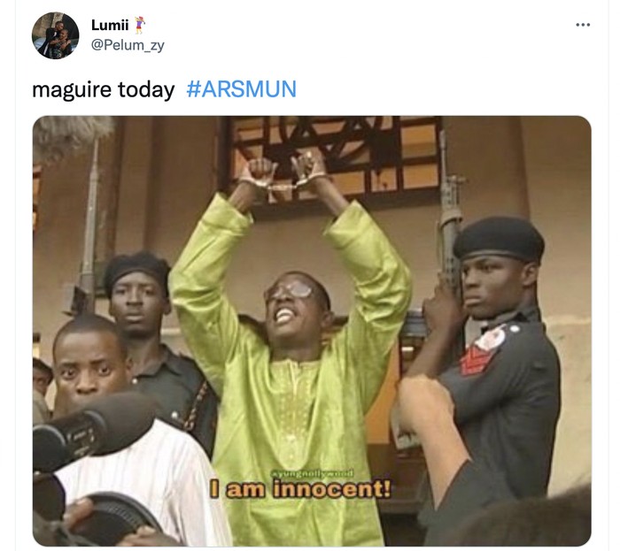 Harry Maguire pun bisa berteriak lantang bahwa dia tak bersalah selama ini atas performa jelek MU. Foto: Twitter