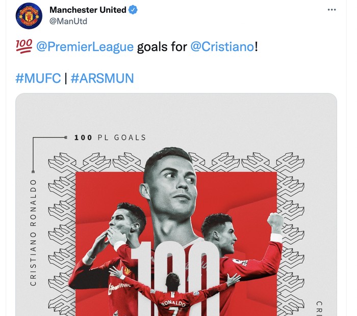 Jika ada kabar baik bagi MU adalah Cristiano Ronaldo telah mencetak 100 gol di Premier League bagi MU. Foto: Twitter