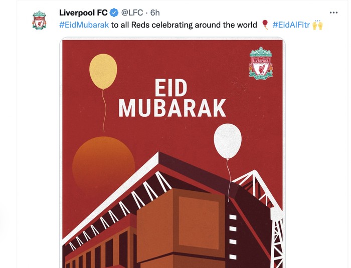 Ucapan Selamat Lebaran dari Liverpool. Foto: Twitter