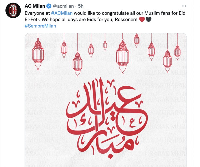Ucapan Selamat Lebaran dari AC Milan. Foto: Twitter