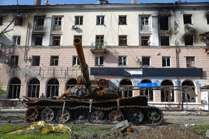 Kenapa tank Rusia keok, menurut Boston karena Rusia dalam posisi menyerang dan Ukraina bertahan, sehingga Ukraina bisa lebih banyak mengincarnya. Ukraina juga bisa menghancurkan logistik Rusia sehingga tank Rusia kesulitan bahan bakar di garis depan. Foto: Associated Press