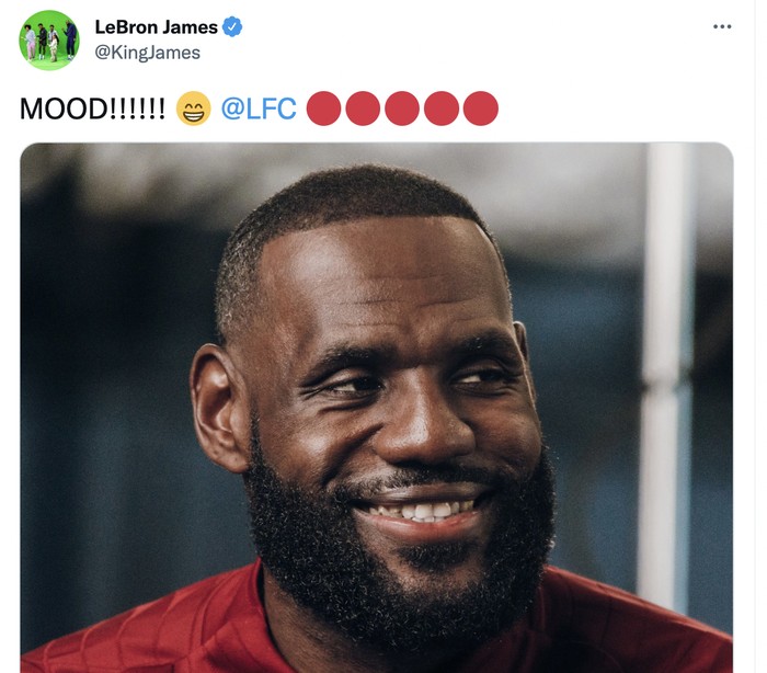 Pebasket LeBron James sangat bergembira dengan Liverpool. Dia dikenal sebagai penggemar berat tim ini. Foto: Twitter