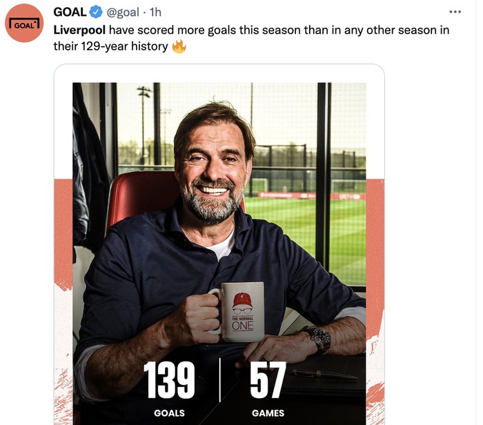 Musim ini Liverpool juga sangat produktif melesakkan gol. Foto: Twitter