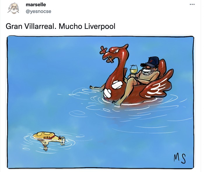 Villarreal yang sering dijuluki kapal selam kuning benar-benar tenggelam di tangan Liverpool. Foto: Twitter