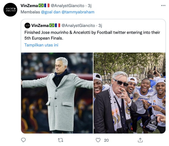 Tentunya ini catatan manis Mou, mampu membawa tiga tim berbeda masuk ke final di berbagai kasta. Foto: Twitter