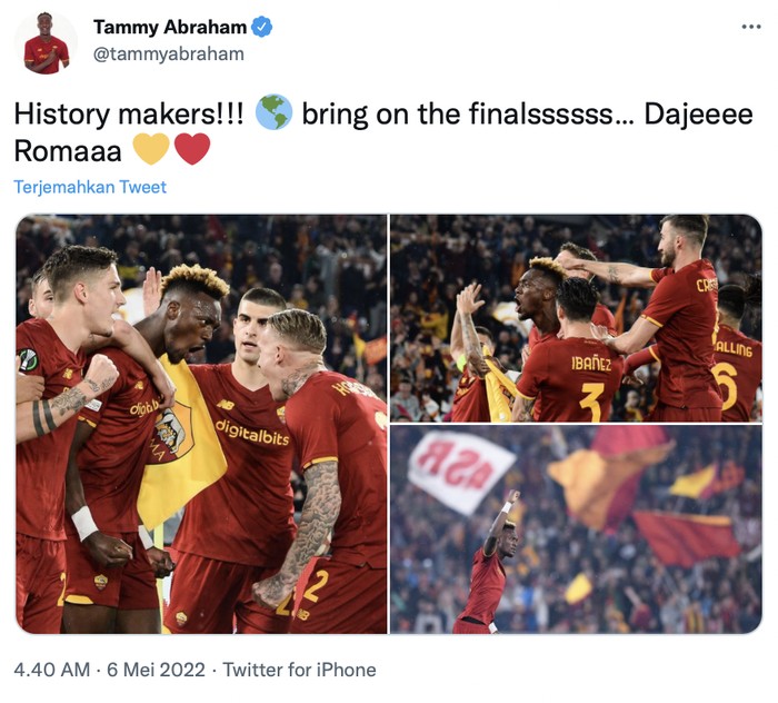 Kemenangan AS Roma di babak semifinal. Foto: Twitter