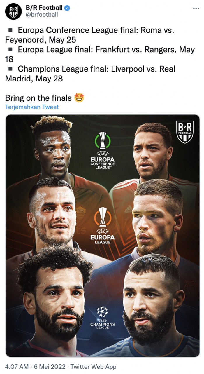 Merata, tiga final klub antar Eropa yang berasal dari masing-masing satu negara, Inggris, Jerman, Spanyol, Italia, Belanda, dan Skotlandia. Foto: Twitter