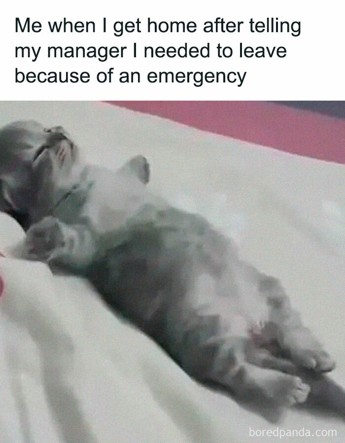 Izinnya karena ada keperluan mendadak, pas sampai rumah malah rebahan. Foto: via Bored Panda