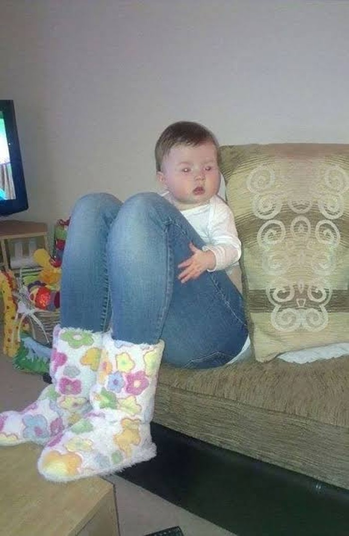 Kaki sang bayi lebih besar dari badannya. Foto: Reddit