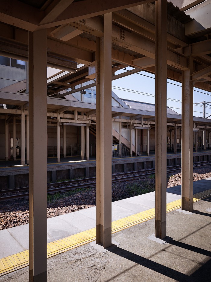 Pemandangan ini, terinspirasi dari stasiun kereta Etchu-Daimon Station di Toyama, Jepang. Foto: (Artstation: Lorenzo Drago).