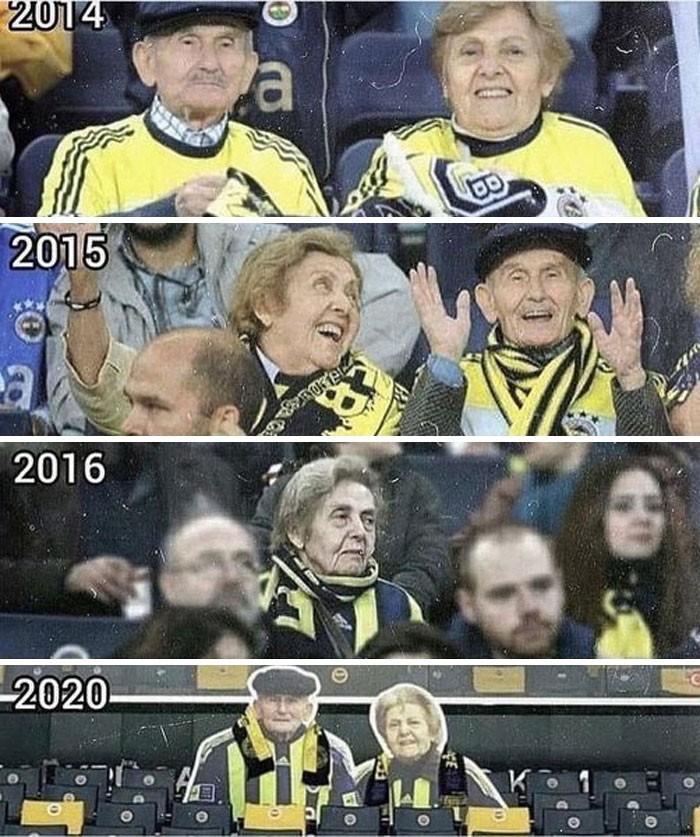 Mumtaz Amca dan Ihsan Teyze yang selalu setia menyaksikan Fenerbahce di stadion. Fans pun memberi penghormatan ketika keduanya sudah tiada. Foto: Pritam Singh Rathore via Bored Panda Β
