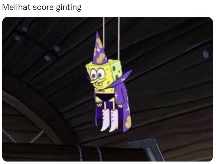 Meme klasik Ginting Super Saiyan selalu keluar untuk menyemangati Ginting. Foto: (Twitter).