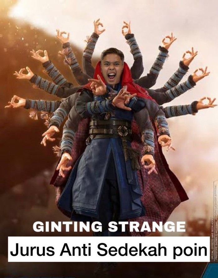 Meme baru nih, Ginting jadi Doctor Strange dengan jurus anti sedekah poin. Foto: (Twitter).