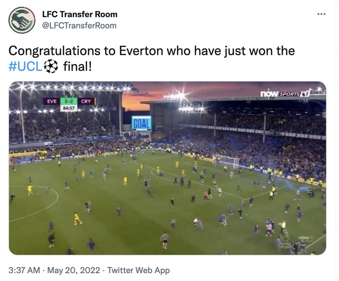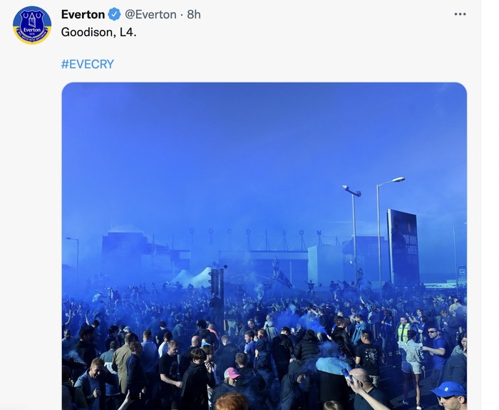Euforia fans Everton penuh sukacita dan disebut sebagai fans terbaik dunia. Foto: Twitter