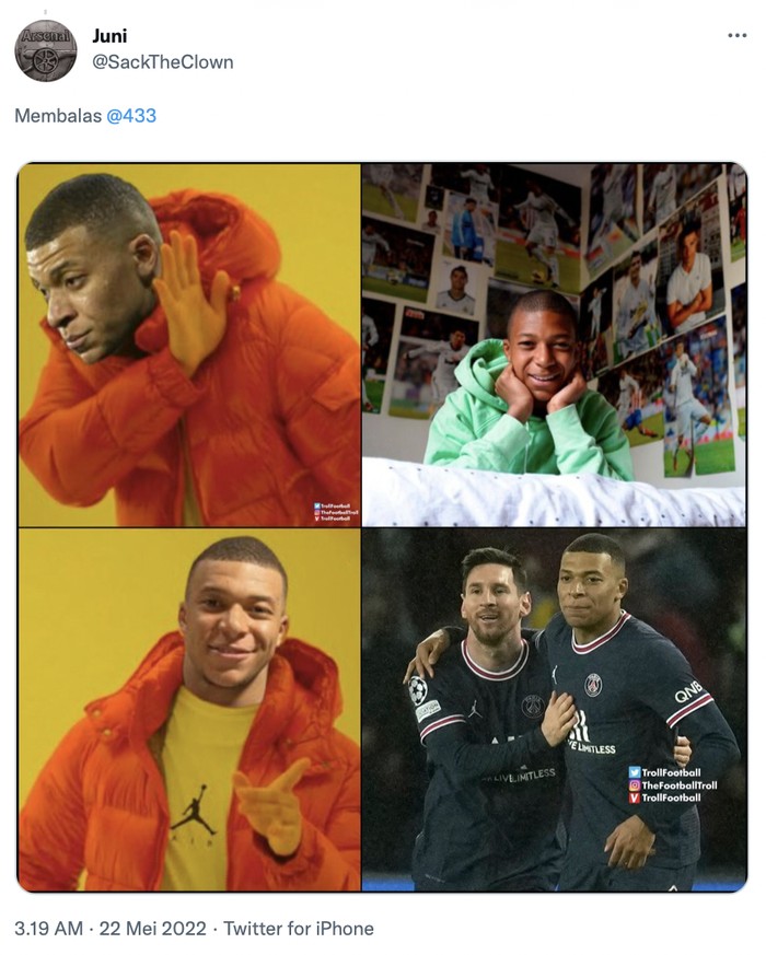 Alhasil, fans Real Madrid pun kecewa dengan keputusan ini. Sebab, ini kali kedua ia ditolak Mbappe. Foto: Twitter