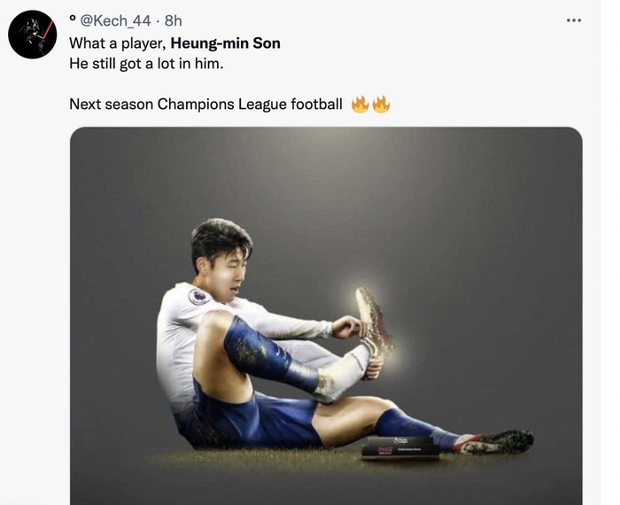 Akun Spurs Korea pun mengumbar pujian pada Son. Foto: Twitter