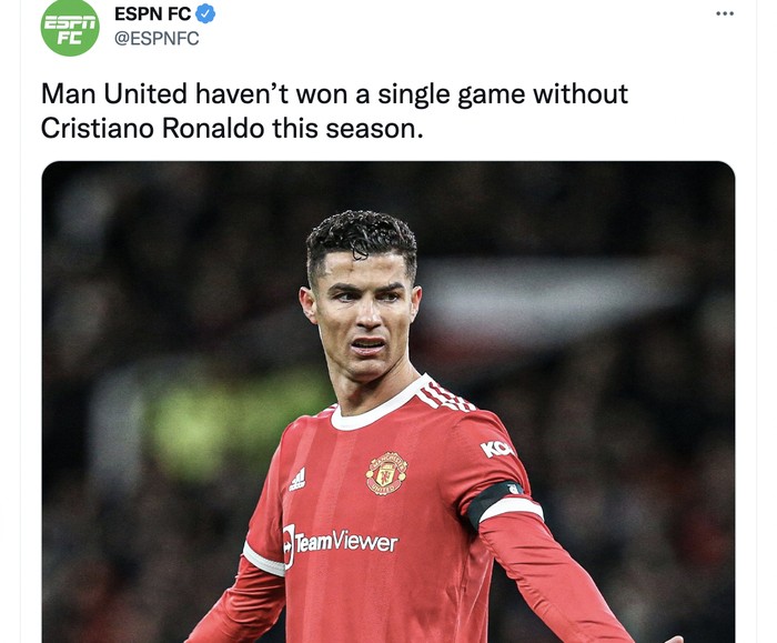 Tanpa Ronaldo, MU sama sekali tidak bisa menang. Foto: Twitter