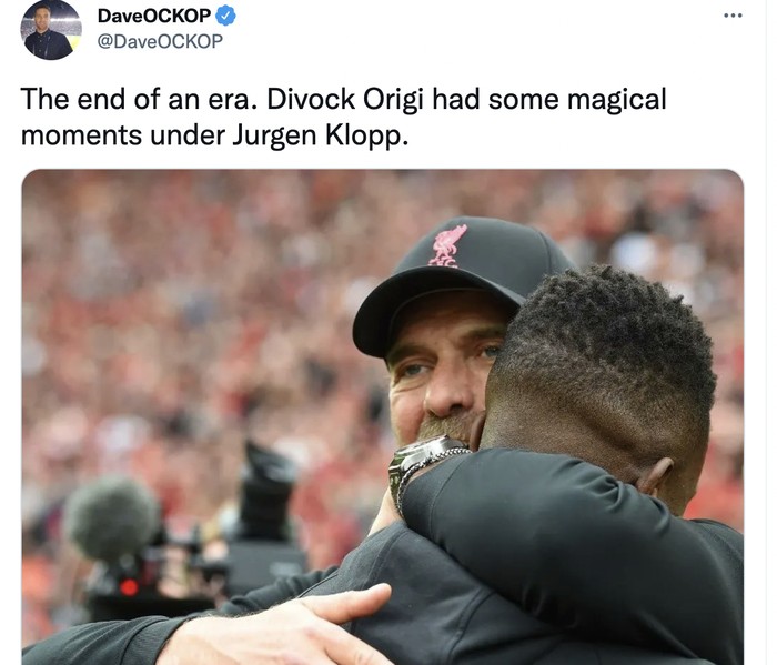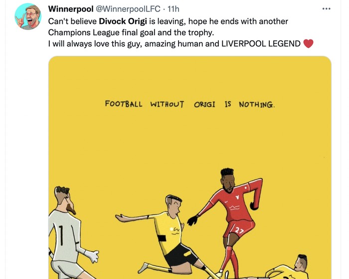 "Legenda klub yang memberikan momen terbaik di sejarah kita," sebut akun ini tentang Origi. Foto: Twitter