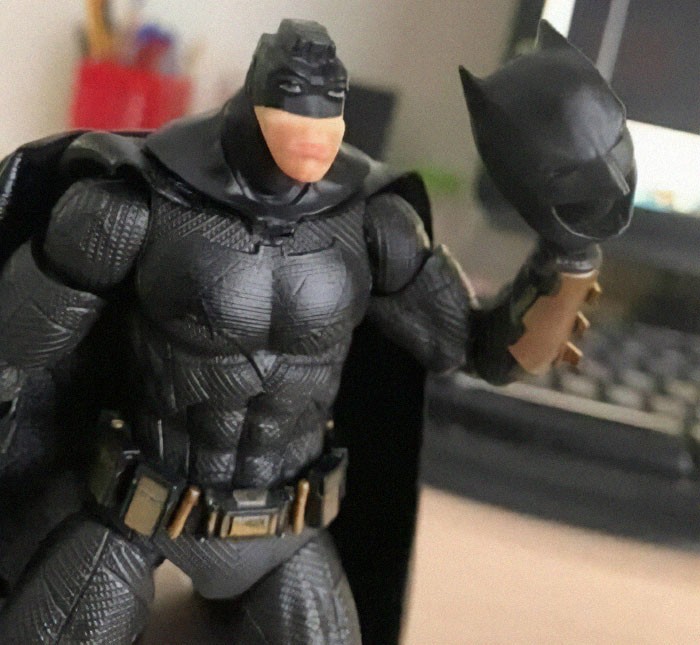 Oh jadi seperti ini kepala si Batman. Foto: Boredpanda