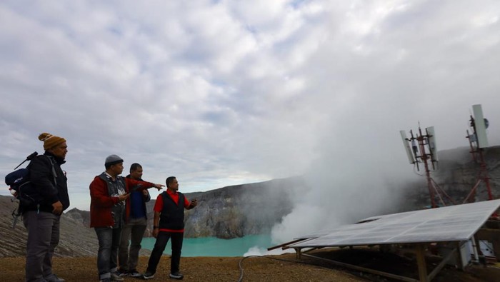 General Manager Network Service Assurance Telkomsel Jawa Timur, Permata Jaya Simarmata bersama General Manager Network EngineeringΒ and Quality Telkomsel Jawa Bali, Wendy Adewijaya dan Manager Network Service Jember, Syafrizal Rahadian, memastikan jaringan network di puncak Gunung Ijen tetap handal, agar para wisatawan bisa lancar berkomunikasi maupun update sosial media mereka di puncak Gunung Ijen, Sabtu (29/5).