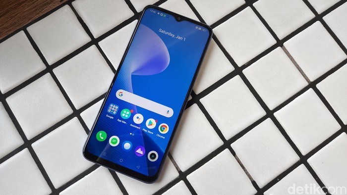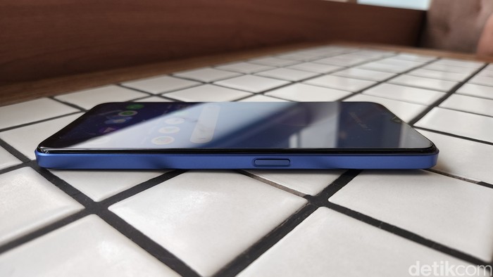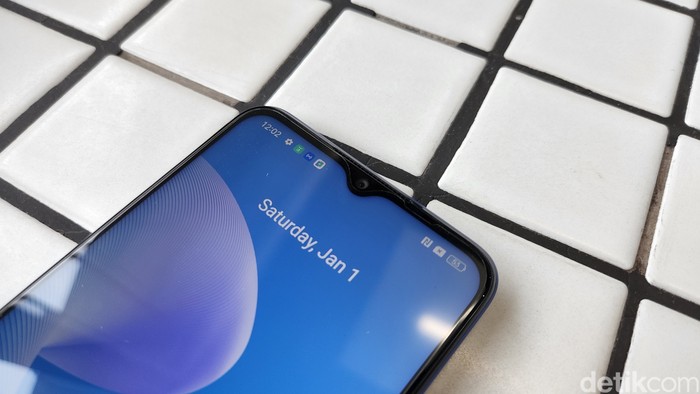 Berkat desain notch tetesan air, layar ini memiliki rasio screen-to-body hingga 90,7%. Di sana menjadi rumah bagi kamera selfie 8 MP. / Foto: Adi Fida Rahman/detikINET