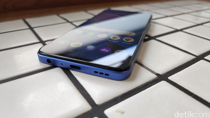 Fitur pelengkap yang disediakan antara lain 5G Dual Mode, 4G, Bluetooth 5.3, sensor sidik jari di samping layar, headphone jack 3,5mm, dual speaker, dan USB-C. Foto: Adi Fida Rahman/detikINET