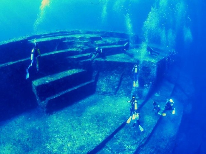 Monumen Yonaguni yang berada di bawah laut Jepang ini masih menyimpan misteri karena sampai saat ini belum diketahui apakah pahatan batu ini dibuat oleh manusia sebagai bukti Atlantis atau terbentuk secara alami. Foto: thechive