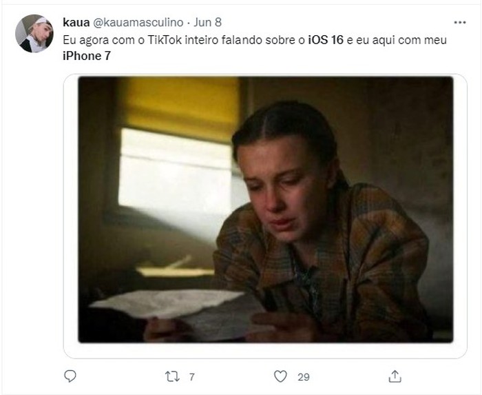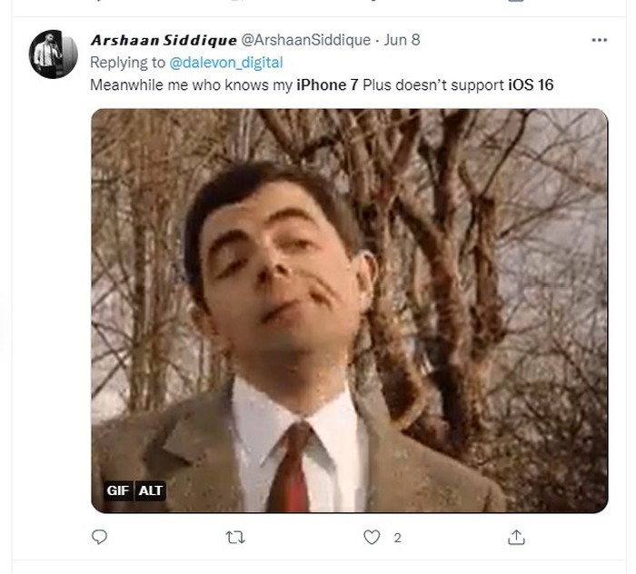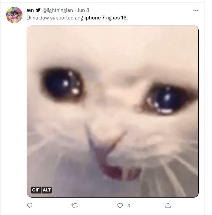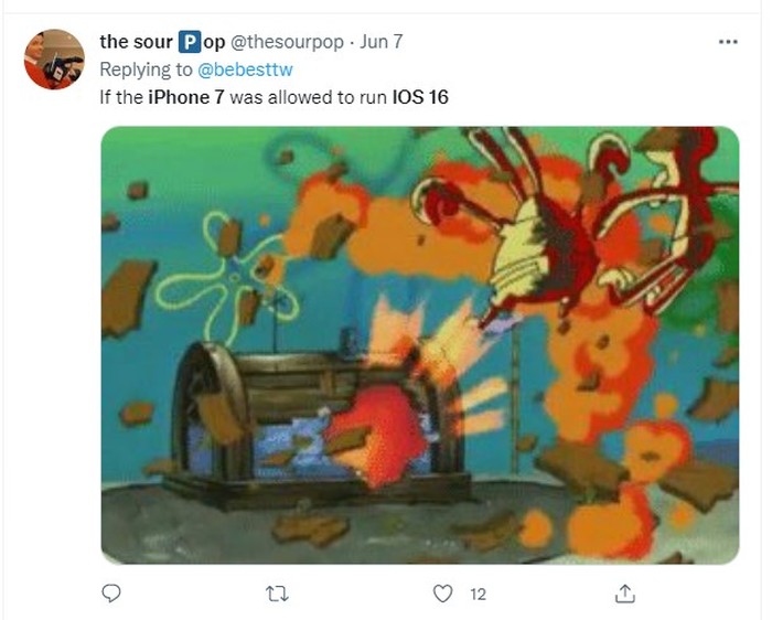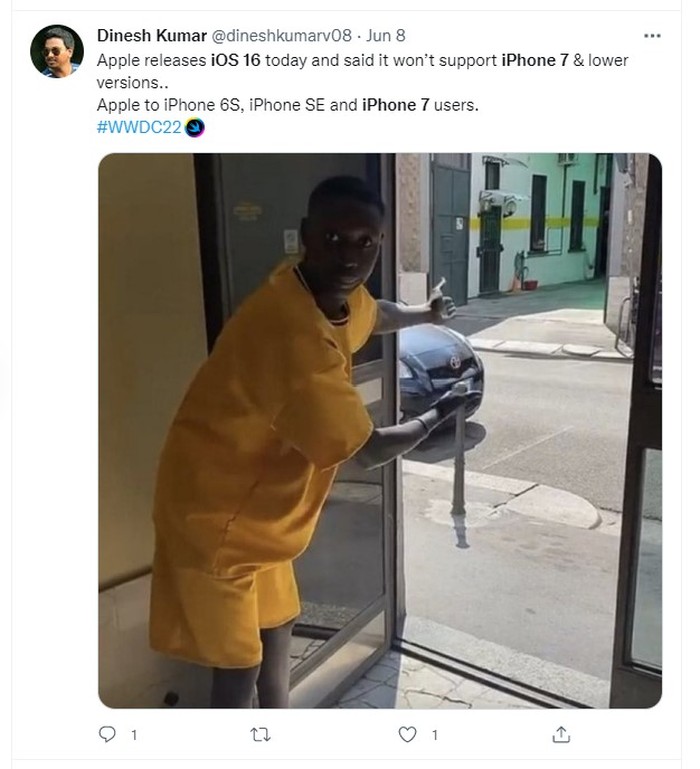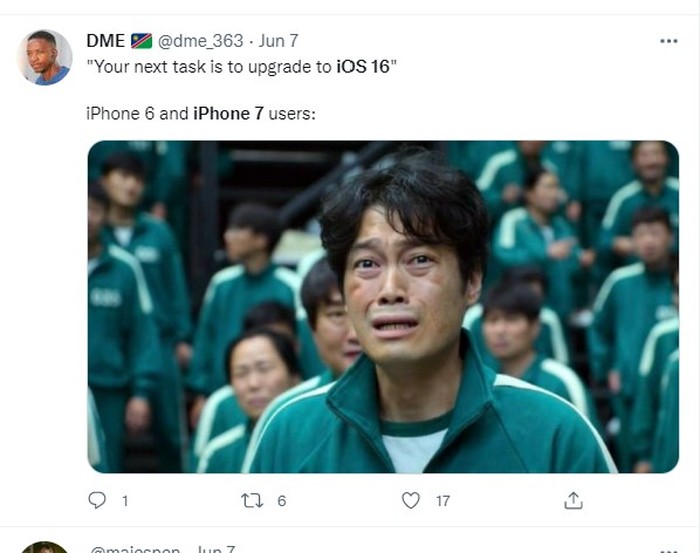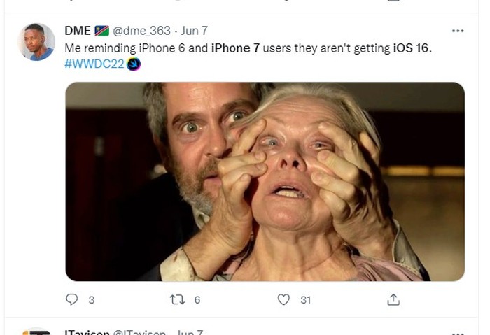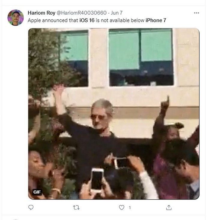 Reaksi penngguna iPhone 7 saat pengumuman perangkat pendukung iOS 16. Foto: via Twitter