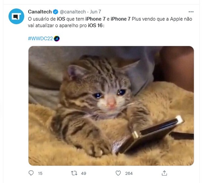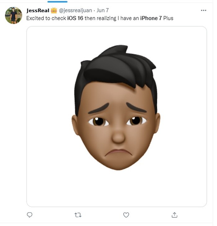 Pengguna iPhone 7Β nangis tahu iOS 16 tidak bisa dicicipi. Foto: via Twitter