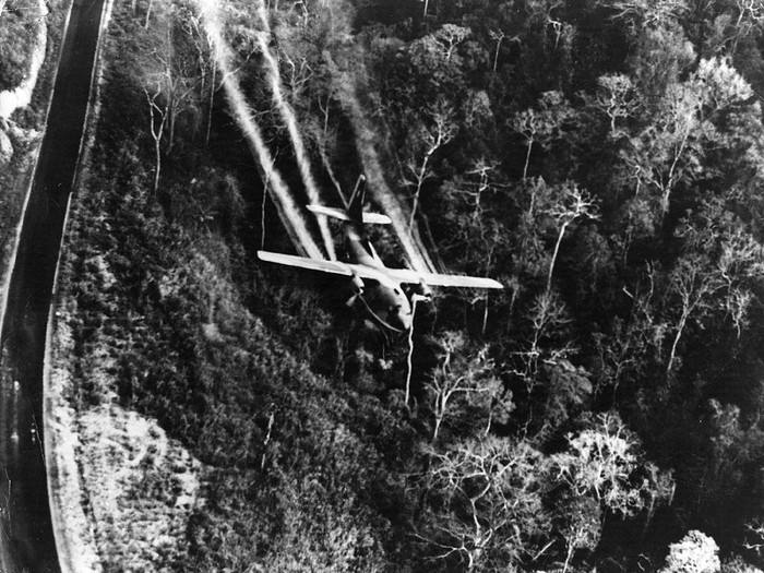 Penampakan Pesawat Fairchild C-123 milik Angkatan Udara AS menjatuhkan jutaan galon herbisida saat Perang Vietnam. Melansir BBC Indonesia, herbisida yang digunakan militer AS itu memiliki keterkaitan dengan temuan Arthur Galston. Ilmuwan AS itu tak menyangka temuannya digunakan sebagai senjata perang yang dikenal dengan Agen Oranye. Tak hanya merusak tanaman, Agen Oranye juga berbahaya bagi kesehatan manusia. Salah satu komponennya bahkan bisa bertahan hingga beberapa dekade dan dapat memicu kanker, cacat bagi bayi dalam kandungan, masalah infetilitas, hingga serangan terhadap sistem syaraf dan sistem kekebalan. Galston dan sejumlah ilmuwan lain pun mendorong pemerintah AS untuk melakukan kajian terkait dampak berbahaya Agen Oranye hingga kemudian presiden AS kala itu, Richard Nixon, memerintahkan penghentian penyemprotan Agen Oranye. Photo by Keystone/Getty Images.