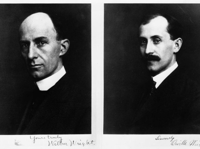 Wilbur dan Oliver atau dikenal sebagai Wright bersaudara diketahui merupakan orang pertama yang merancang pesawat terbang. Rancangannya itu pun membawa keduanya menjadi salah satu penemu paling terkenal karena pesawat terbang mampu memberikan alternatif transportasi yang bermanfaat bagi manusia. Photo by Hulton Archive/Getty Images.