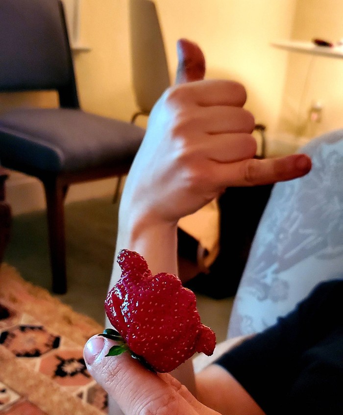 Stroberi berbentuk tangan manusia. Foto: Reddit via Brightside
