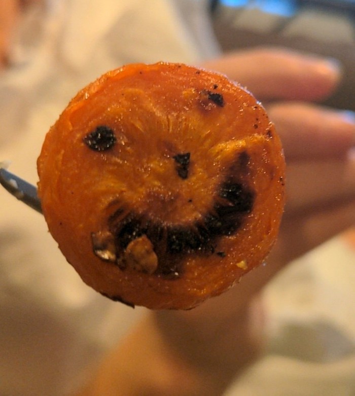 Wortel panggang membentuk tampilan wajah senyum. Foto: Reddit via Brightside