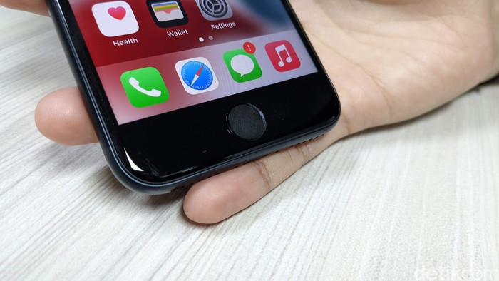 Seperti bezel di bagian atas dan bawah yang masih sangat tebal. Di bagian bawah layar juga tersedia tombol Home yang juga berfungsi sebagai sensor Touch ID.