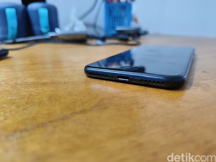 Di bagian bawahnya hanya diisi port Lightning dan speaker. Sejak iPhone SE 2 yang dirilis tahun 2020, Apple memang sudah menghilangkan headphone jack 3,5 mm di ponsel murahnya.