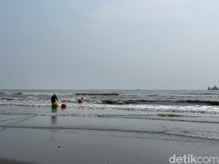 Setelah ditarik ke pinggir pantai, selanjutnya kabel optik tersebut akan ditarik lagi ke daratan yang sudah digali sebelumnya. Foto: Agus Tri Haryanto/Detikcom