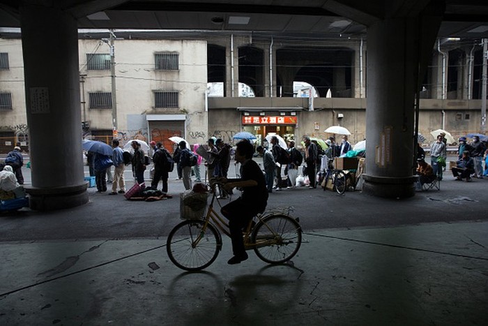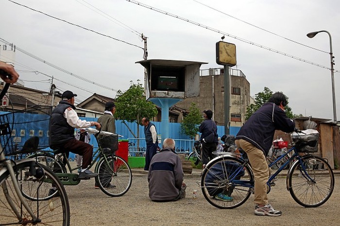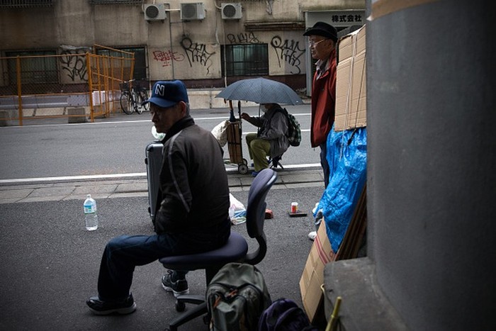 Ini adalah potret gelandangan yang ada di area Kamagasaki, Osaka. Di Jepang, masih ada kaum gelandangan walau jumlahnya terus menurun. Foto: Getty Images