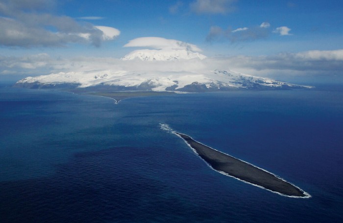 Di dekat pulau itu, ada pulau kecil bernama McDonald yang aktif secara vulkanis. Letusan besar pernah terjadi di tahun 1996 yang membuat ukuran pulau ini bertambah dua kali lipat. Foto: Australia Antacrtic Program